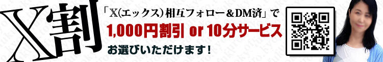 X割 – 当日3時間前までのご予約「X相互フォロー&DM済」で 1,000円割引or10分サービス